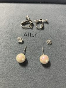 ブログ シェルパールイヤリングからピアスへ 2026.02.16 お母様から譲られたシェルのイヤリングをピアス加工のご依頼でした。 やはり、お母様からのもので,思いが籠っていらしたので、出来上がりをお喜びくださいました。 Tweet Share Pocket Pin it
