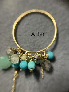 ターコイズの石が幾つか無くなってしまい,1番大きな石も外れてしまったので,ターコイズを補充して,外れた石も留めて欲しいとのご依頼でした。