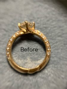 文字は消えたら入れ直しをとの依頼でした。 今回も,サイドに石が入っているので,真円にならないかも知れませんとお伝えしました。