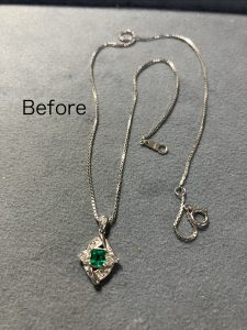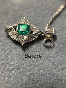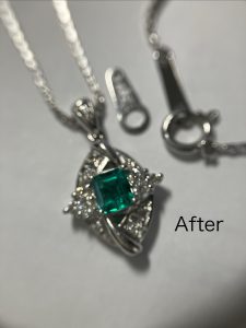 チェーンから外せない。違うペンダントにも使える様にしたいとの事で,なるべく費用をかけずにとのご希望でした。