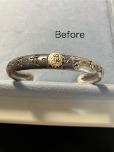 表面の柄の中は黒くいぶしてありましたが,それよりもピカピカになさりたいとのことでした。