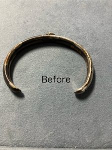 20年前にご購入された物で,最近は余りお着けになってなくて,久しぶりにお使いなろうと思われたそうです。 少しご自分でも仕上げてみようと思われて,手を加えられたのですが,却って黒くなったので仕上げ直しのご依頼でした。