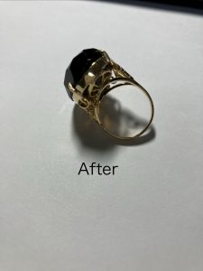 修理内容は,地金のリングは歪み直しと仕上げで,もう一つのスモーキークオークリング(シルバーの金メッキがハゲ気味)はサイズ直し7番から13番と石が動いているので,しっかり留め直しでした。