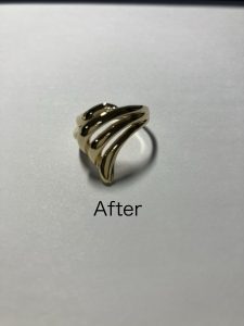 上がりをご覧になって,地金の変形直しは、美しくなっているの喜ばれ、スモーキークオーク大分に金メッキがしっかりかかり,綺麗に上がって来ました。