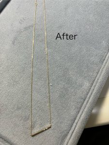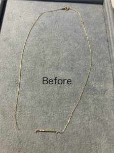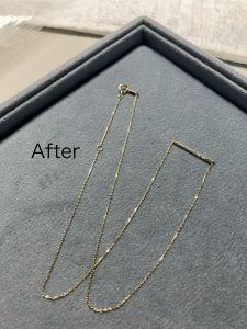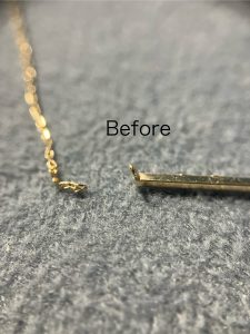 ブログ 2点ご依頼の修理の一点目 チェーン切れ修理 2025.11.17 今回は,このチェーン切れと,マリッジリングのサイズ直しのご依頼でした。 ネックレスは,ロー付け丸カンを口閉じと,簡単な洗浄でとても綺麗に上がりました。 Tweet Share Pocket Pin it