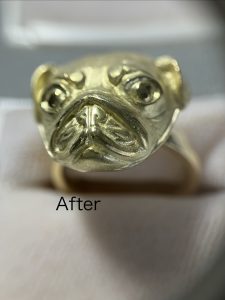 今回は,お父様のK18のパグ犬の顔のカフスをリングに作り替えのお仕事でした。