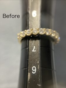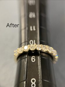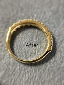 ブログ k18ダイヤモンドリングサイズ直し 2026.02.16 二つの修理をお持ちくださった内の一つ目です。K18一文字ダイヤモンドリングサイズ直しです。 #8から9.5のサイズ直しでした。私の所では,半番対応もしています。 最初は#10かしらとおっしゃってましたが、気持ち小さくても良いとのことで,9.5にする事になりました。 お受け取りにいらしたか時に,これで良いですとおっしゃって頂きました。 Tweet Share Pocket Pin it